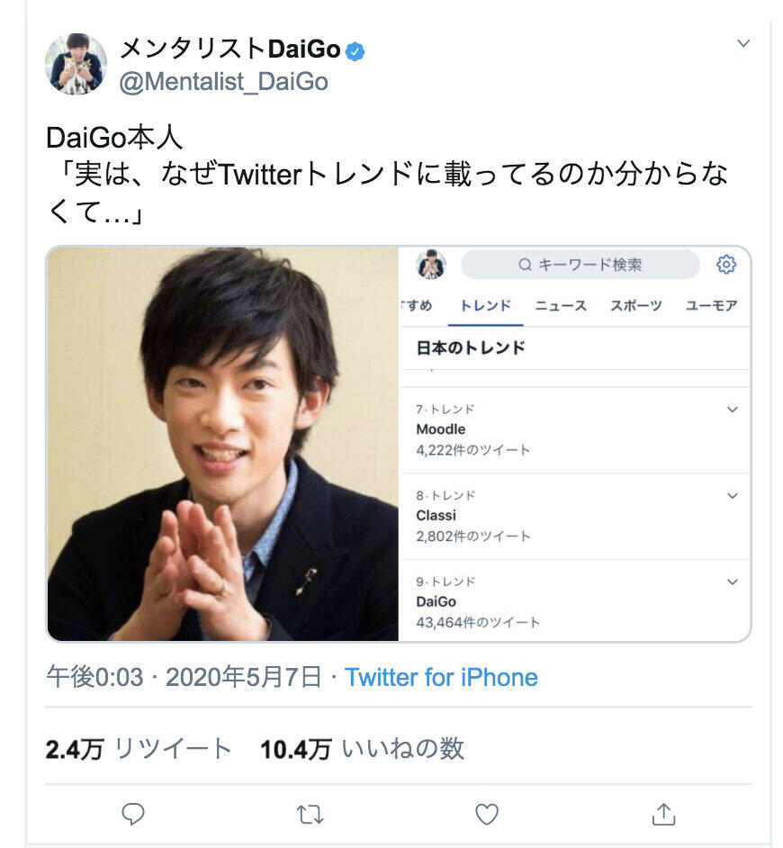 ã¡ã³ã¿ãªã¹ãdaigoãã"ãçµ¶è³ Giocatoreã¨forward Milanoã§æ°æ¥ãã¬ã"çªçµã«ç»å ´ ãã©ã³ã¹ã¿ã¤ã 㺠ãµãã«ã¼ã®ãããã¡ãã·ã§ã³ã©ã¤ã from balance-style.jp メンタリストdaigo の悪質性を考察してみた これまでも悪質なパフォーマンスをする人間は多勢いた。似たような人を列挙して、それぞれの特徴を書いて 、daigoと比較してみたいと思う。 mr.マリック 最初はマジシャンとして活動してい. メンタリストdaigoです。 ブロマガでのお知らせは久しぶりですね。 さて、ニコニコよりはるかに使いやすい動画アプリを会員の皆さんに提供するために、 去年から開発をしてきました会員専用アプリ【ぬこみこ動画】ですが、 最新の メンタリストdaigo(長男): 弟のように謎は作れないけど、メンタルは読めます。 趣味は、作家と読書と動画配信(ニコ生とyoutube)、投資は勉強中。松丸 彗吾(次男): メンタル読めないしドラム叩けないし謎は作れませんが、アプリは作れます。